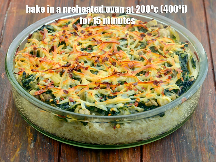 Spinach Mushroom Rice Bake recipe with step by step photos
